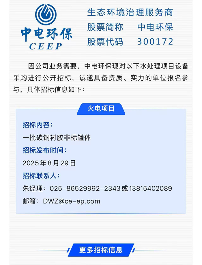 中電環(huán)保股份有限公司是南京市首家環(huán)保上市公司(股票簡(jiǎn)稱(chēng):中電環(huán)保,股票代碼:300172),南京環(huán)保產(chǎn)業(yè)協(xié)會(huì )會(huì )長(cháng)單位,國家級聯(lián)盟理事長(cháng)單位,是生態(tài)環(huán)境治理服務(wù)商,主營(yíng)(3+1):水務(wù)、固危廢、煙氣治理及產(chǎn)業(yè)創(chuàng )新平臺,包括:工業(yè)水處理、污水處理及水環(huán)境綜合治理;固危廢土壤、污泥餐廚垃圾處理;煙氣及VOCS治理;智慧環(huán)保;高端裝備等。