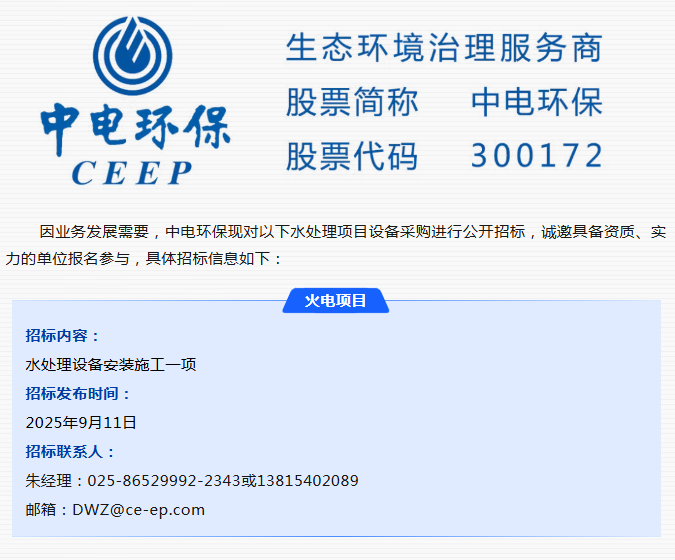 中電環(huán)保股份有限公司是南京市首家環(huán)保上市公司(股票簡(jiǎn)稱(chēng):中電環(huán)保,股票代碼:300172),南京環(huán)保產(chǎn)業(yè)協(xié)會(huì )會(huì )長(cháng)單位,國家級聯(lián)盟理事長(cháng)單位,是生態(tài)環(huán)境治理服務(wù)商,主營(yíng)(3+1):水務(wù)、固危廢、煙氣治理及產(chǎn)業(yè)創(chuàng )新平臺,包括:工業(yè)水處理、污水處理及水環(huán)境綜合治理;固危廢土壤、污泥餐廚垃圾處理;煙氣及VOCS治理;智慧環(huán)保;高端裝備等。