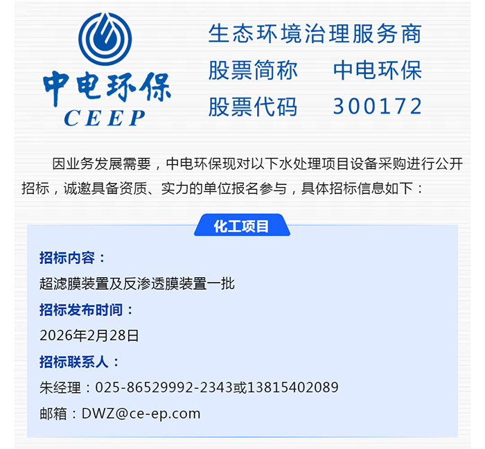 中電環(huán)保股份有限公司是南京市首家環(huán)保上市公司(股票簡稱:中電環(huán)保,股票代碼:300172),南京環(huán)保產(chǎn)業(yè)協(xié)會會長單位,國家級聯(lián)盟理事長單位,是生態(tài)環(huán)境治理服務商,主營(3+1):水務、固危廢、煙氣治理及產(chǎn)業(yè)創(chuàng)新平臺,包括:工業(yè)水處理、污水處理及水環(huán)境綜合治理;固危廢土壤、污泥餐廚垃圾處理;煙氣及VOCS治理;智慧環(huán)保;高端裝備等。